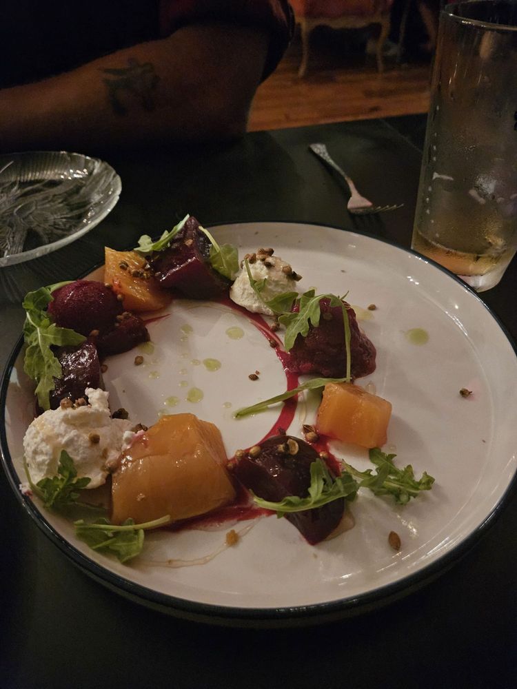 Roasted & marinated beets, sorbet, goat cheese mousse or house vegan ricotta, honey, candied coriander